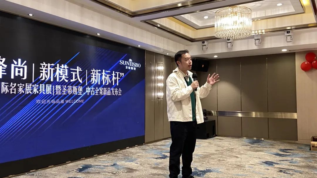 接下来,db真人旗舰工业营销部副经理吴天喜先生为我们重磅揭晓了2025春季新品中古全案系列和新古典全案升级新品,他从选材、设计、风格、工艺等方面进行了全面的讲解,并提到此次中古新品的全案模式是以更具设计感的创新方式,给予消费者整体性的体验感升级,助力大家在激烈的市场竞争中,突显差异化的优势,实现业绩的飞跃式增长。