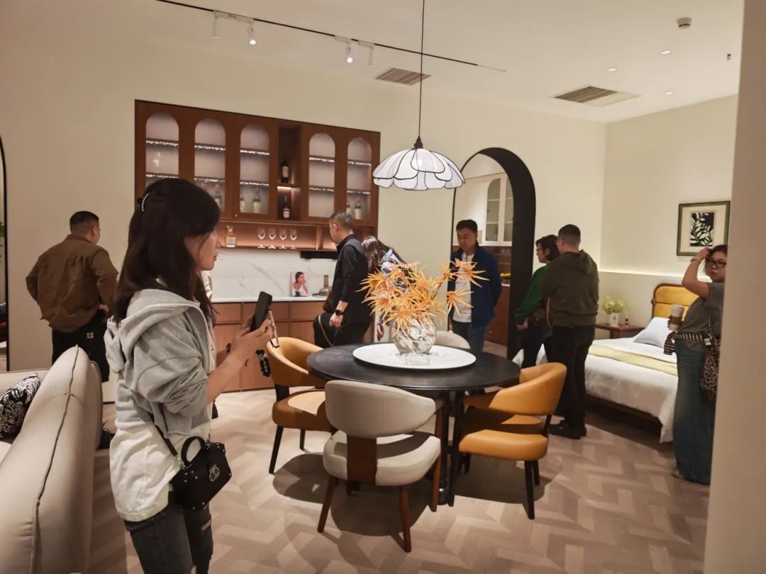 新品发布品鉴会现场,db真人旗舰中古全案凭借独特的空间布局,创新的时尚设计,优质的材料细节以及精心的场景营造,吸引了全国优秀经销商及业界嘉宾们的目光,他们沉浸在高级的美学世界里,感受创新与品质交织的魅力。db真人旗舰中古展厅里人潮涌动,众多经销商都对中古全案新品的创新设计称赞有加,现场签约不断,气氛热烈。